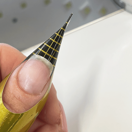 Ved bruk av negleform er det viktig at den sitter tett under og på sidene av neglen for å ikke skape en luftlomme.