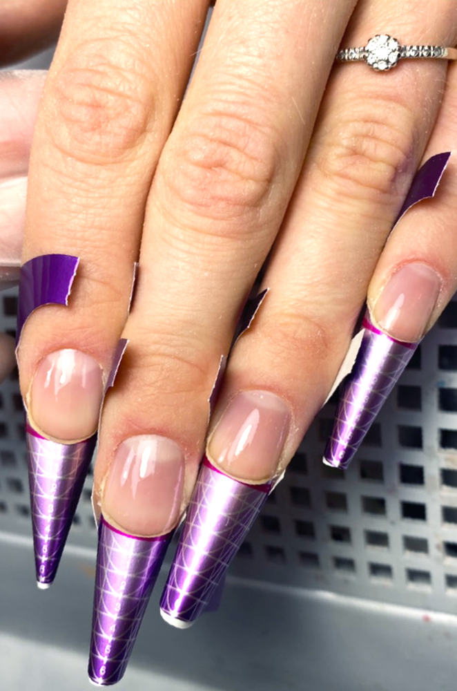 Etter neglene er forberedt skikkelig er det på tide å legge på negleformer eller tipper om du ønsker å forlenge neglene. Bruker du tipper må disse også formes og mattes ned for at gelen skal sitte ordentlig. Deretter påfører du et tynt lag med INVERAY Base Coat med en «gniende» bevegelse, slik at du fyller inn alle ujevnheter i den naturlige neglen. Base Coaten gjør at gelen får bedre heft, og danner en beskyttende hinne mellom den naturlige neglen og gelen. Noen liker å bruke et tynt lag med Builder Gel fremfor Base Coat, men det velger du helt selv. Det er også delte meninger om man skal påføre negleformer før basen, dette er også en smakssak.